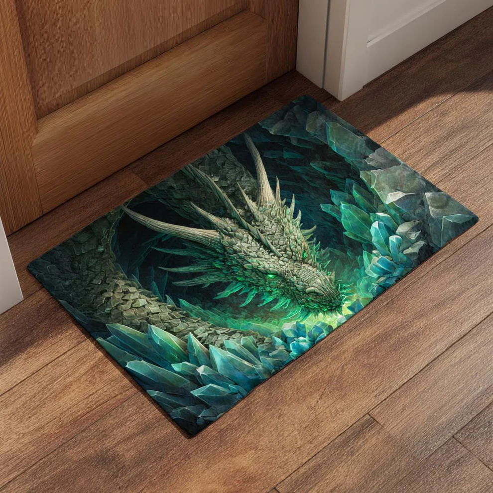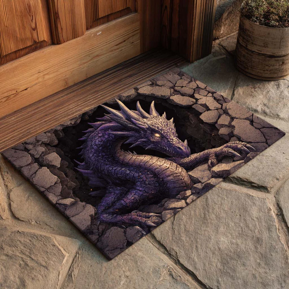 Whimsical Magic Style 3D Dragon Breaking Through Cracked Ground Pattern Dragon Doormat with High-Definition Print & Non-Slip Backing | Dragon Doormat